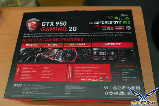 <外盒正、背面都詳細介紹了 MSI GTX 950 GAMING 2G 的特色。>